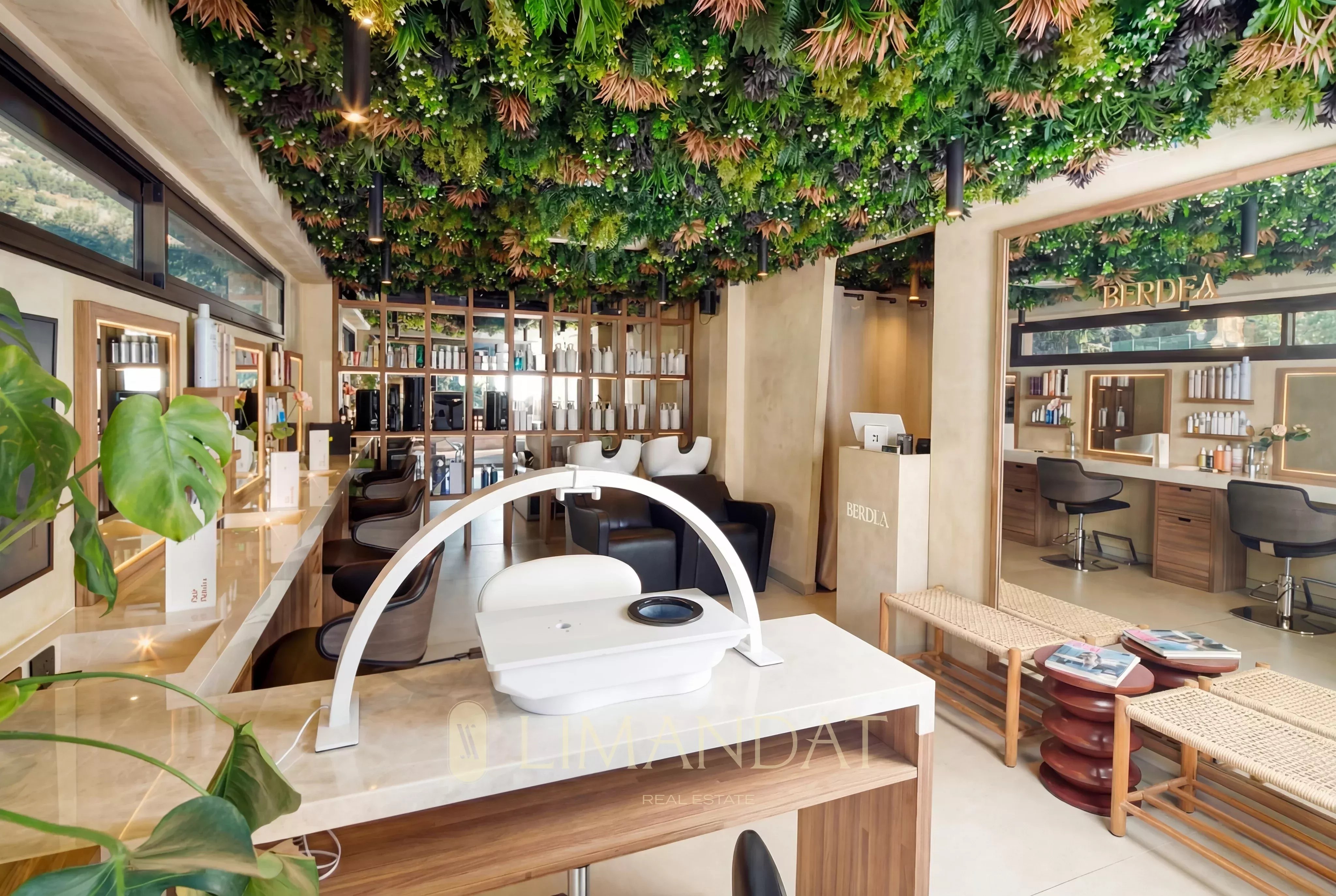3 styling stations, 1 manicure station, premium equipment. Turnkey, immediately operational.