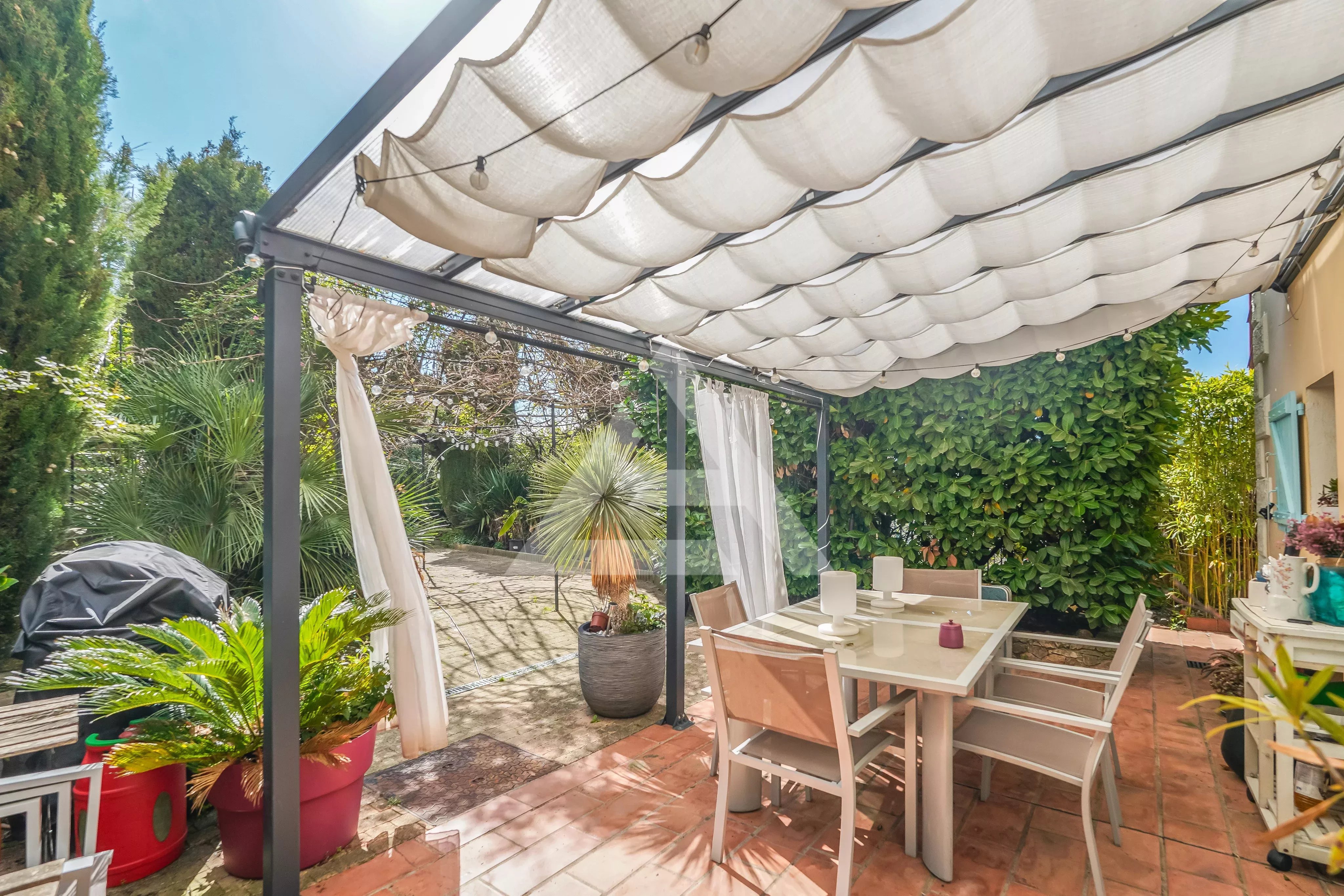 Located close to the centre of La Turbie, this charming townhouse offers 166 sqm of living space on a 630 sqm plot, complete with a double garage.