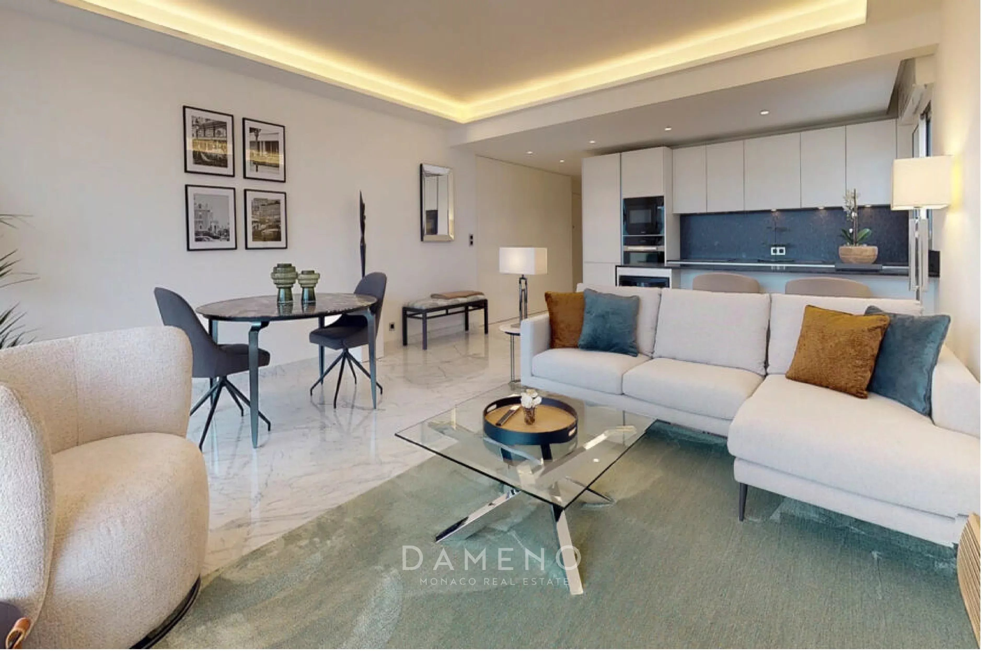 Dans la prestigieuse résidence Château Périgord, idéalement située sur le Boulevard d’Italie, découvrez ce très bel appartement de 3 pièces, entièrement rénové avec des finitions de haute qualité, situé en étage élevé.