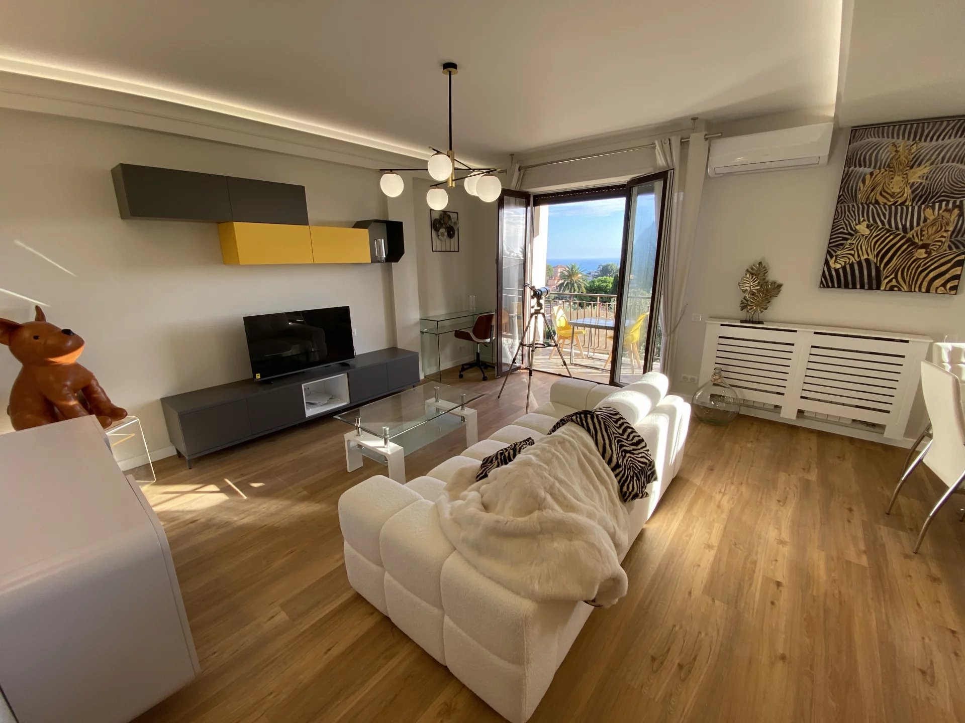 A pochi minuti da Monaco, in residence sicuro, grande appartamento di 4 locali attraverso e ristrutturato con ampie terrazze vista mare. Doppio soggiorno, cucina attrezzata, tre camere da letto e due bagni. Due posti auto completano la proprietà.
